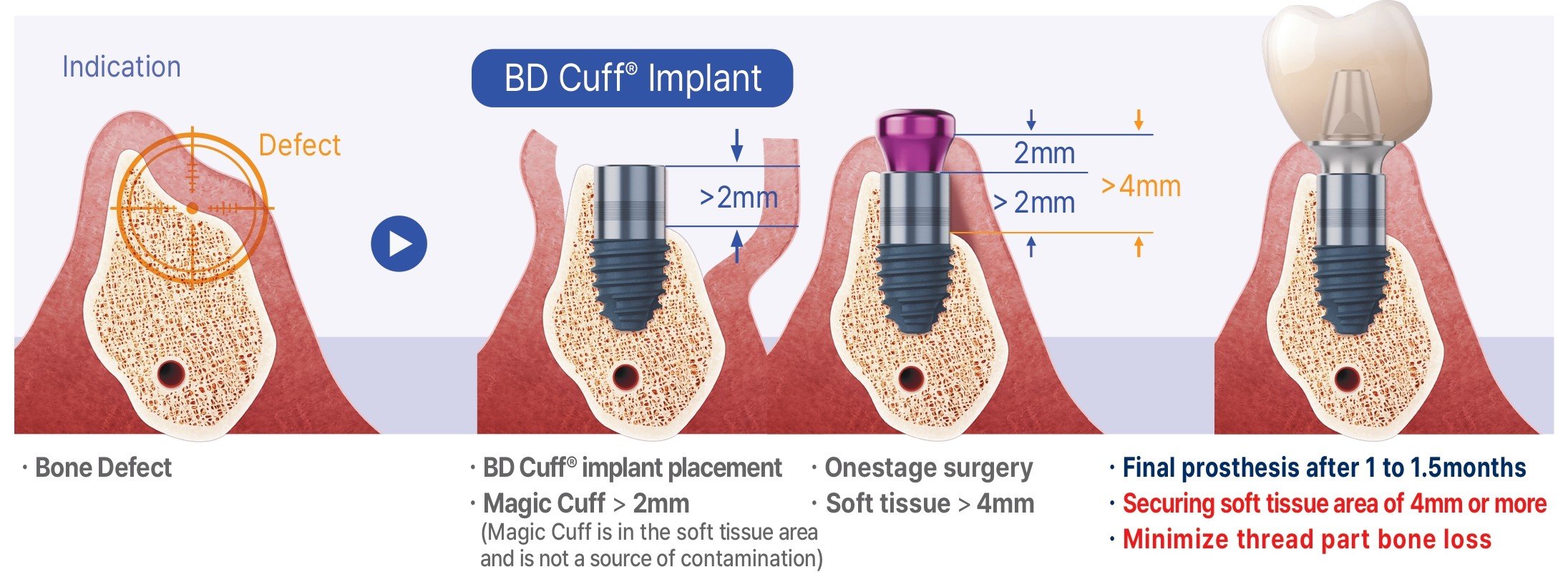 BD Cuff enables implant placement in thin alveolar bone, low bone height, or defective alveolar bone using a simple epicrestal placement technique