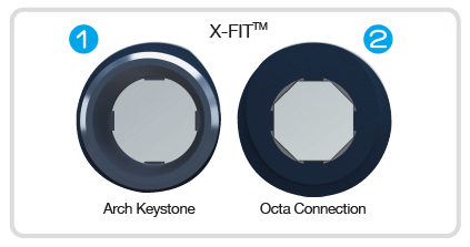 Divkārša iekšējā struktūra, kas sastāv no 30° koniskā arkas veida savienojuma (Arch Keystone) un Octa savienojuma, nodrošinot precīzāku un drošāku saķeri.