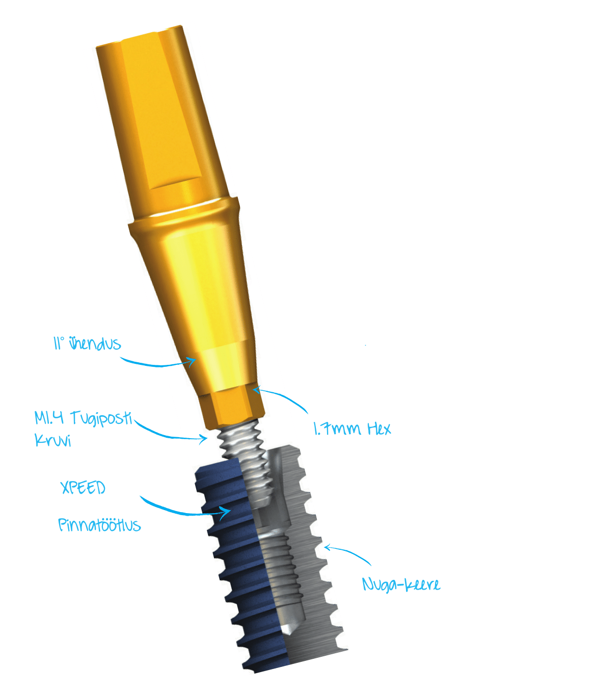 Spēcīgs un uzticams risinājums šaurai kaulu virsmai un maziem priekšējiem zobiem.